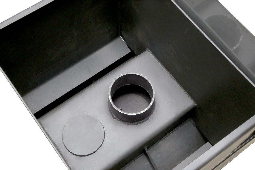Топка печи изготовлена из трубы диаметром 325 мм, толщиной металла 8 мм, что позволяет эксплуатировать печь более 10 лет еженедельно. В самом энерго-напряженном месте печи - на задней стенке, установлен пластина — отбойник толщиной 4мм, который усиливает заднюю стеку и не дает горящим дровам соприкасаться с ней, тем самым увеличивается срок службы печи. Для пожарной безопасности, увеличения скорости нагрева каменей и парного помещения в месте выходы дымовых газов установлен специальный «канал-дымооборот», который не дает дымовым газам напрямую выйти в трубу. На самом «дымообороте» установлено специальное прочистное отверстие для удаления скопившейся сажи.