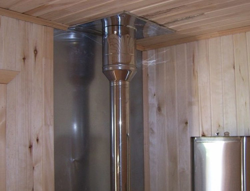 Если своими руками ведется установка внутри помещения, то особое внимание уделяется прохождению труб из нержавейки для дымохода через перекрытия. Некоторые изготовители выпускают элементы специально для этих целей, но в случае необходимости можно их изготовить своими руками.